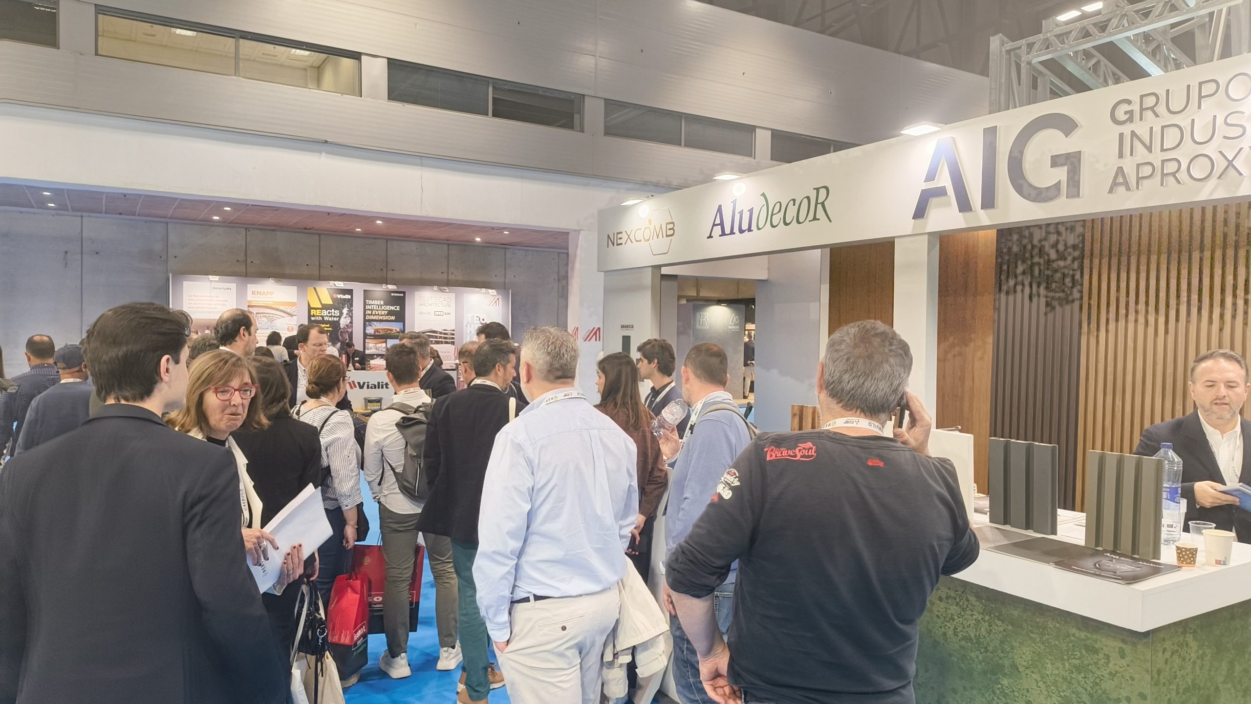 A lo largo de la feria, en el stand de AIG Industrias AproxymaPabellón 10, Stand 10i904— tuvimos el placer de presentar algunas de las propuestas más destacadas de nuestras líneas Aludecor Composite, Aproxyma Plastics y Nexcomb, mostrando nuevos acabados y soluciones técnicas pensadas para responder a las necesidades de la arquitectura y la construcción contemporáneas.